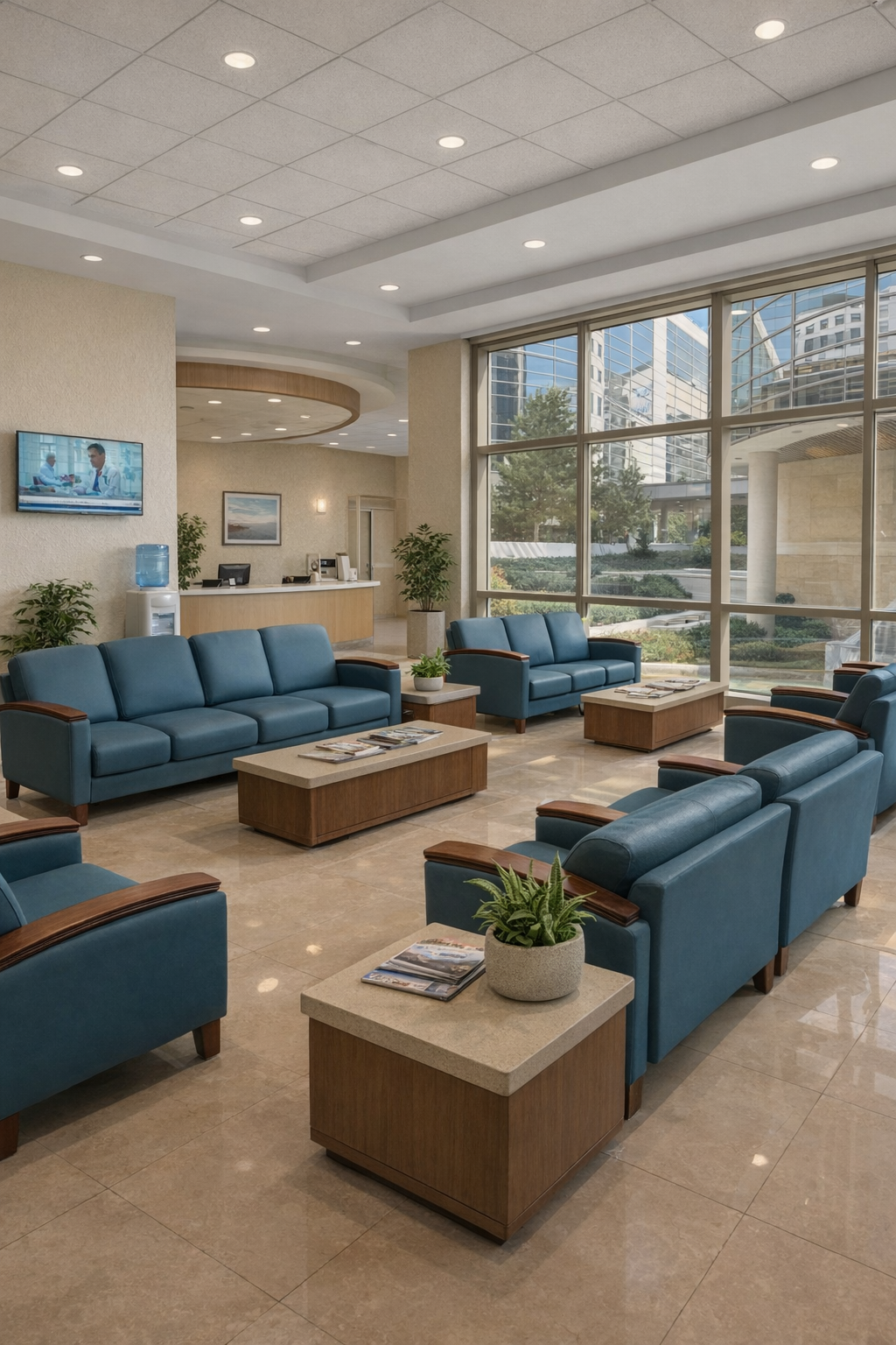 Materiales certificados (viniles clínicos antibacterianos, polímeros de alta resistencia, aceros y maderas tratadas).